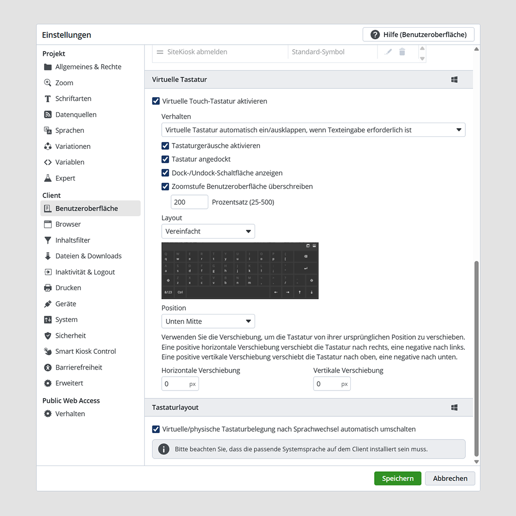 Kiosk-Geräteschutz;Konfiguration nur lokal am Gerät möglich;Keine Benachrichtigungen
